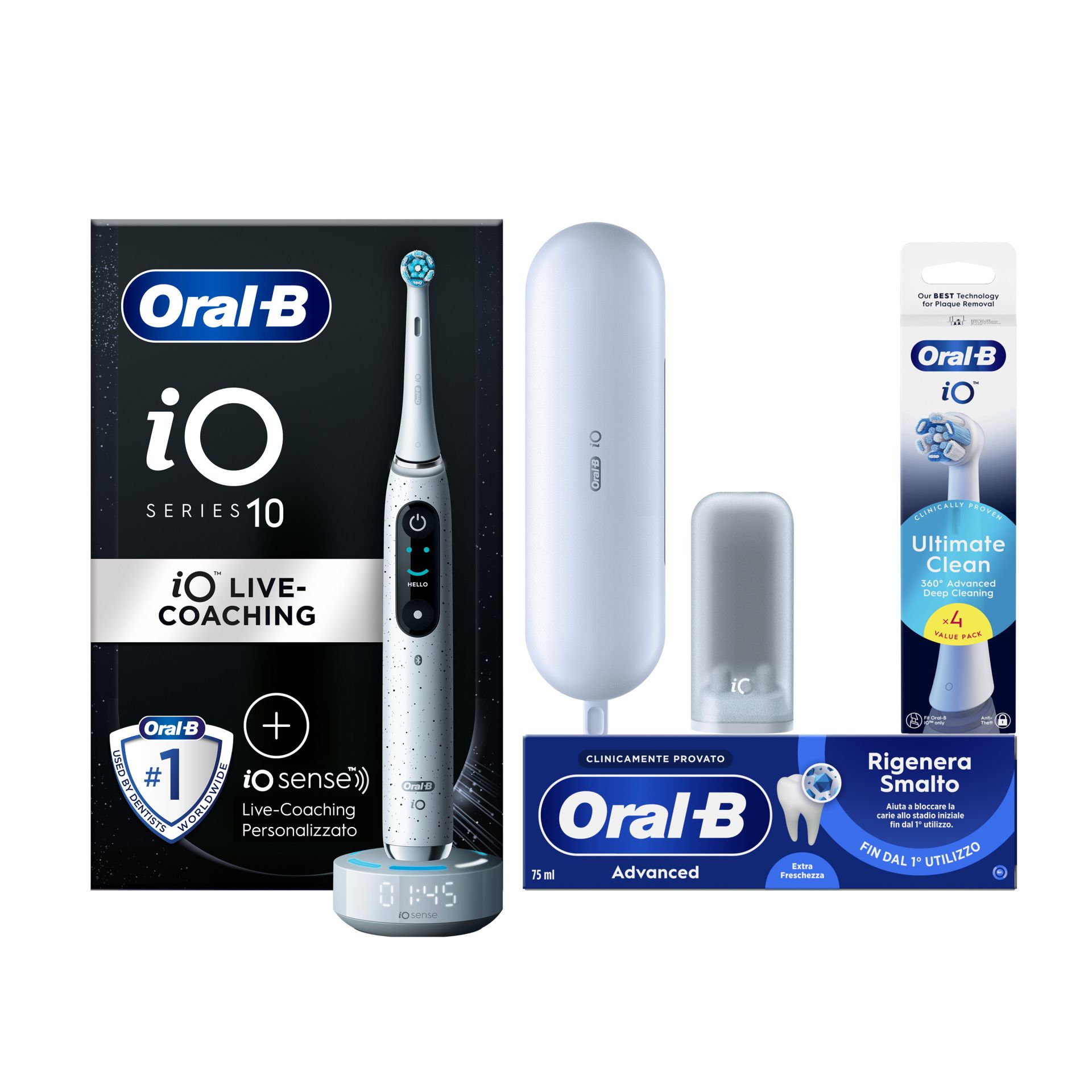 • RIVOLUZIONARIA TECNOLOGIA MAGNETICA iO per la migliore pulizia di Oral-B di sempre, per una sensazione di pulizia professionale e un incredibile spazzolamento personalizzato