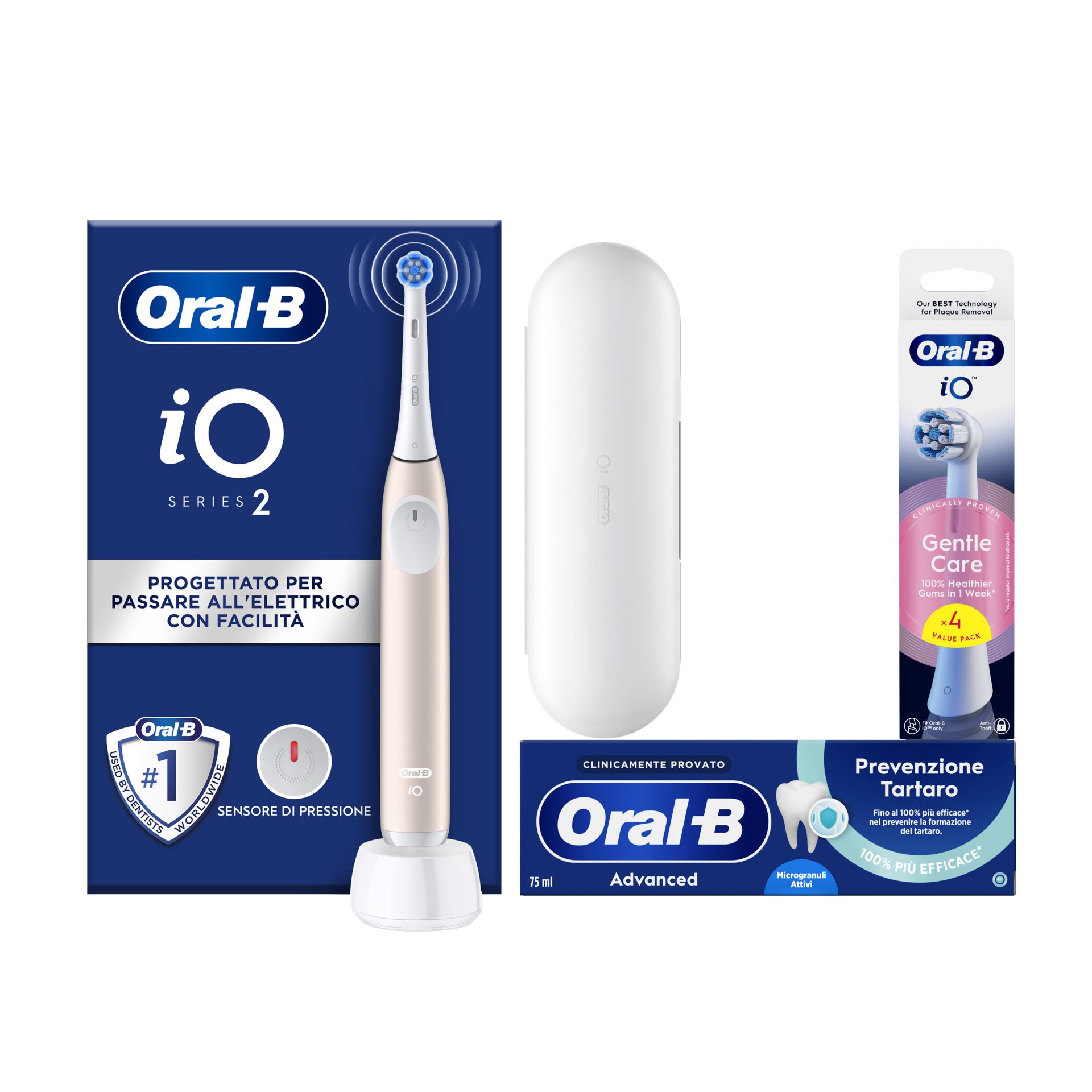 • DENTI 100% PIÙ PULITI rispetto ad uno spazzolino manuale tradizionale. Tecnologia iO di Oral-B: EFFICACE SULLA PLACCA, DELICATO SULLE GENGIVE