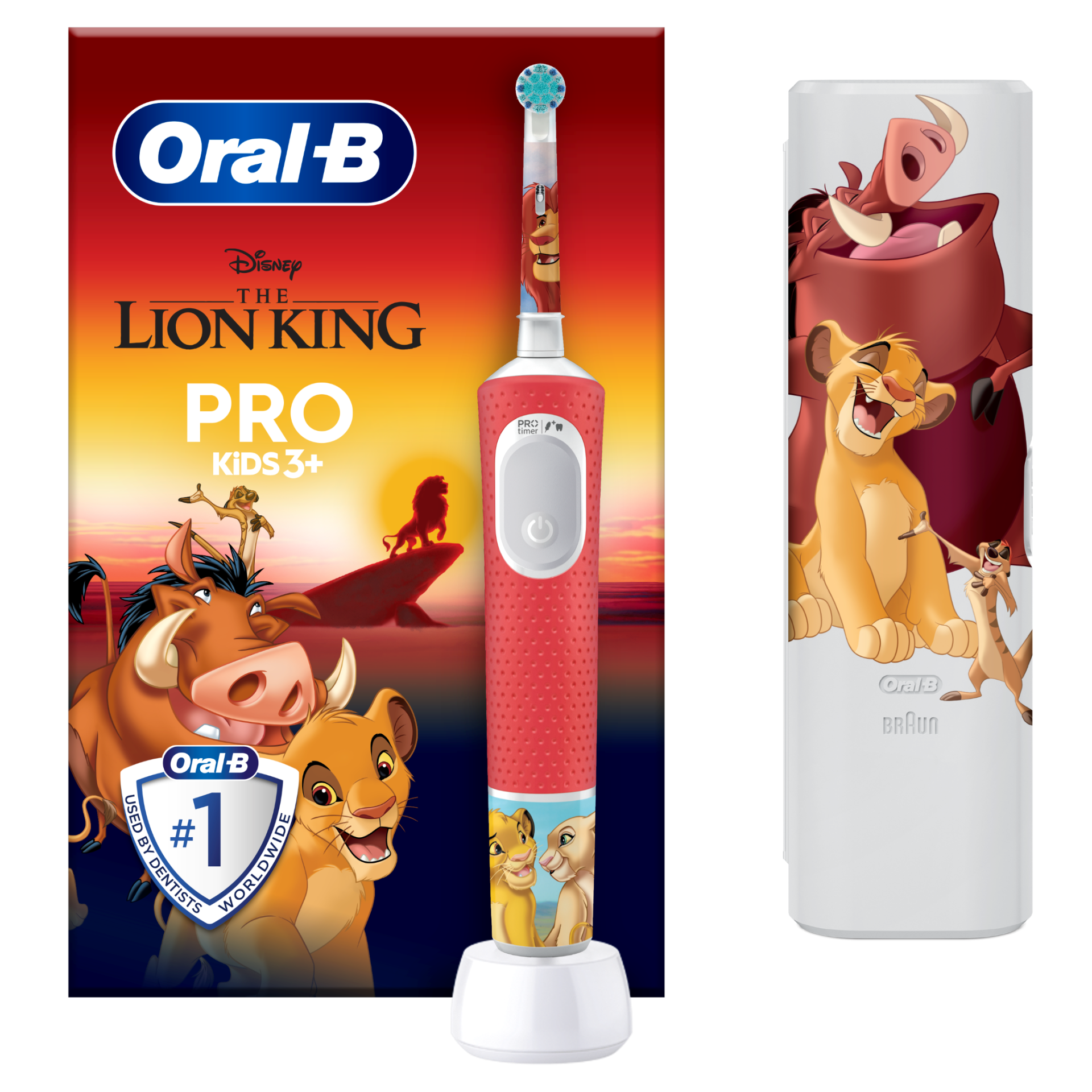 Lo spazzolino elettrico Oral-B Kids per bambini dai 3 anni in su, unisce la pulizia efficace e delicata con il divertimento dei personaggi Disney del Re Leone, aiutando a spazzolare i denti per 2 minuti, come raccomandato dai dentisti. Le setole extra morbide e la piccola testina rotonda sono state progettate appositamente per i bambini e sono compatibili con tutti gli spazzolini elettrici Oral-B Kids. Con 2 modalità di spazzolamento, inclusa una speciale modalità Super Delicata, pulisce delicatamente i denti dei più piccoli, rimuovendo più placca rispetto ad uno spazzolino manuale. Sono inclusi 4 adesivi con i personaggi del Re Leone per personalizzare lo spazzolino.