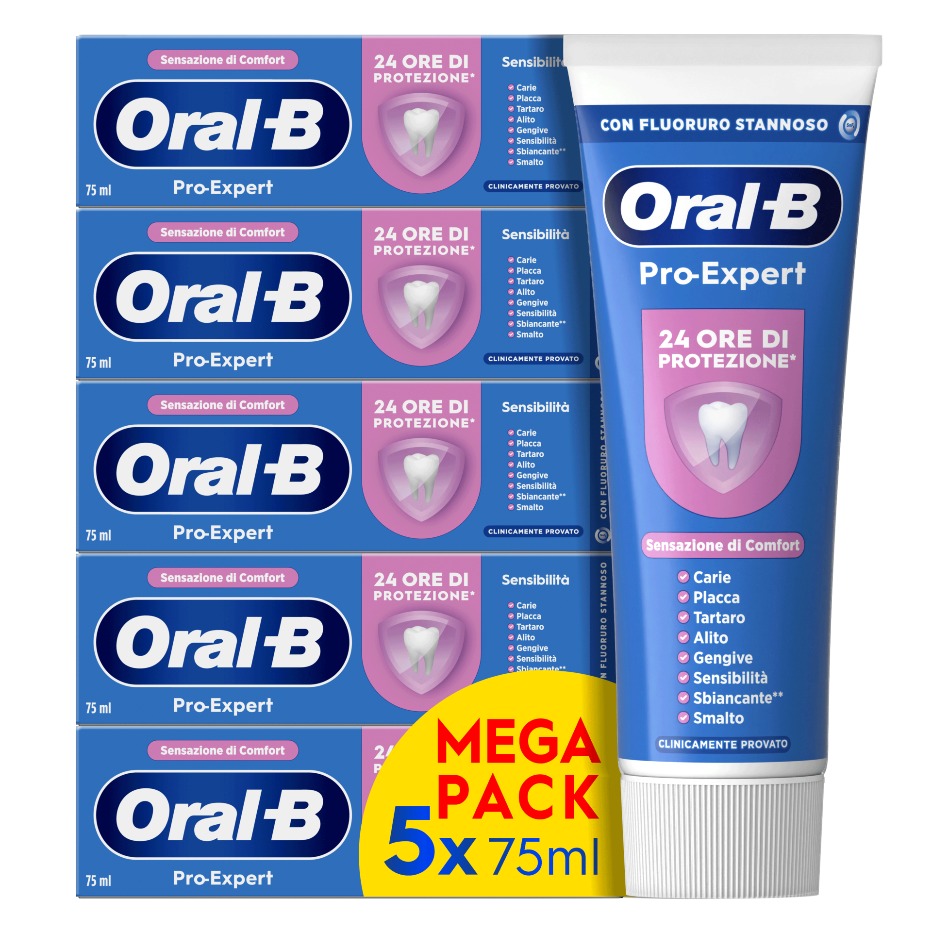 Il Dentifricio Oral-B Pro-Expert Sensibilità è clinicamente provato: offre 24 ore di protezione se utilizzato due volte al giorno. L'esclusiva tecnologia Antibatterica con Complesso di Fluoruro Stannoso crea uno scudo protettivo che aiuta a ridurre la formazione della placca batterica anche dopo aver lavato i denti. Un sapore di menta piperita con eucalipto che lascia una sensazione di freschezza in bocca.