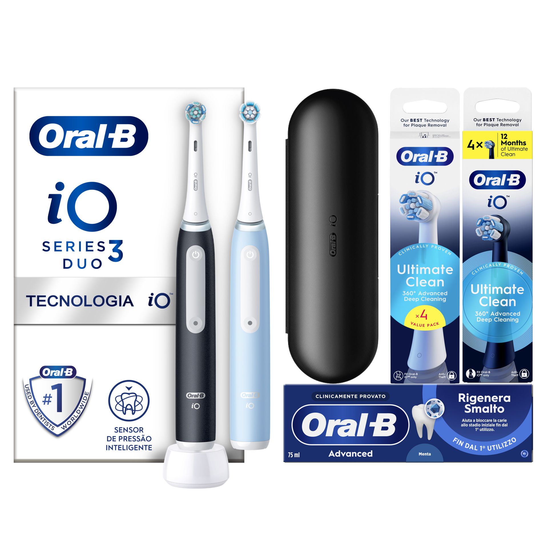Lo spazzolino elettrico iO 3 presenta la migliore tecnologia Oral-B, combinando una testina rotonda ispirata agli strumenti dei dentisti con setole oscillanti per una sensazione di pulizia professionale ovunque tu sia. Il Sensore di Pressione intelligente ti aiuta a non spazzolare i denti troppo forte o troppo delicatamente per proteggere meglio le tue gengive. La funzione Protezione Gengive ti avvisa quando passi troppo tempo a spazzolare con troppa pressione. Sostituisci la testina dello spazzolino Oral-B iO ogni 3 mesi per risultati ottimali.