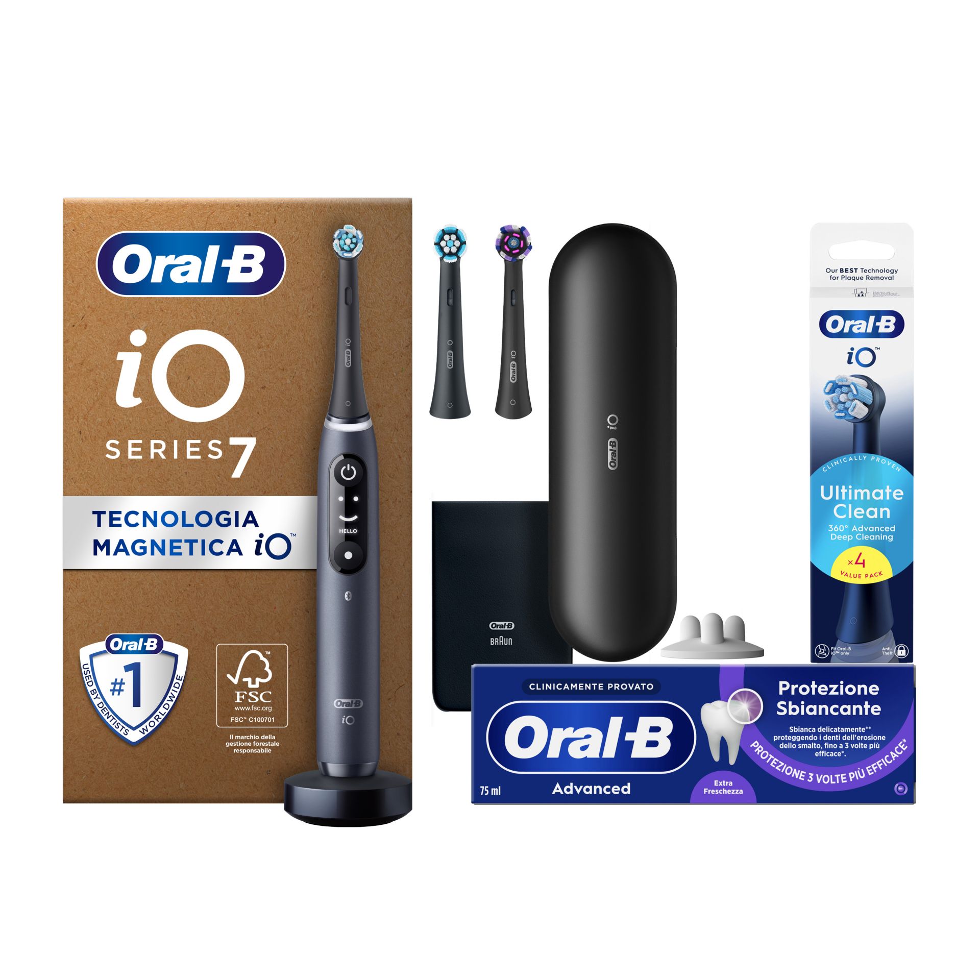 Oral-B ha superato se stesso creando un’esperienza di spazzolamento unica nel suo genere. Oltre il semplice progresso tecnologico, per incorporare un’ingegneria di livello mondiale, offrendo la pulizia più completa, delicata e silenziosa di sempre. Oltre il design, per realizzare un vero e proprio oggetto del desiderio, creando un look elegante riservato alla tecnologia più ricercata. Quando si passa da uno spazzolino manuale ad uno elettrico si migliora la propria igiene dentale, ma quando si passa dallo spazzolamento elettrico a iO, si va oltre l’ordinario per passare ad un’esperienza davvero straordinaria che potrai vedere, ascoltare e sentire in modo diverso.