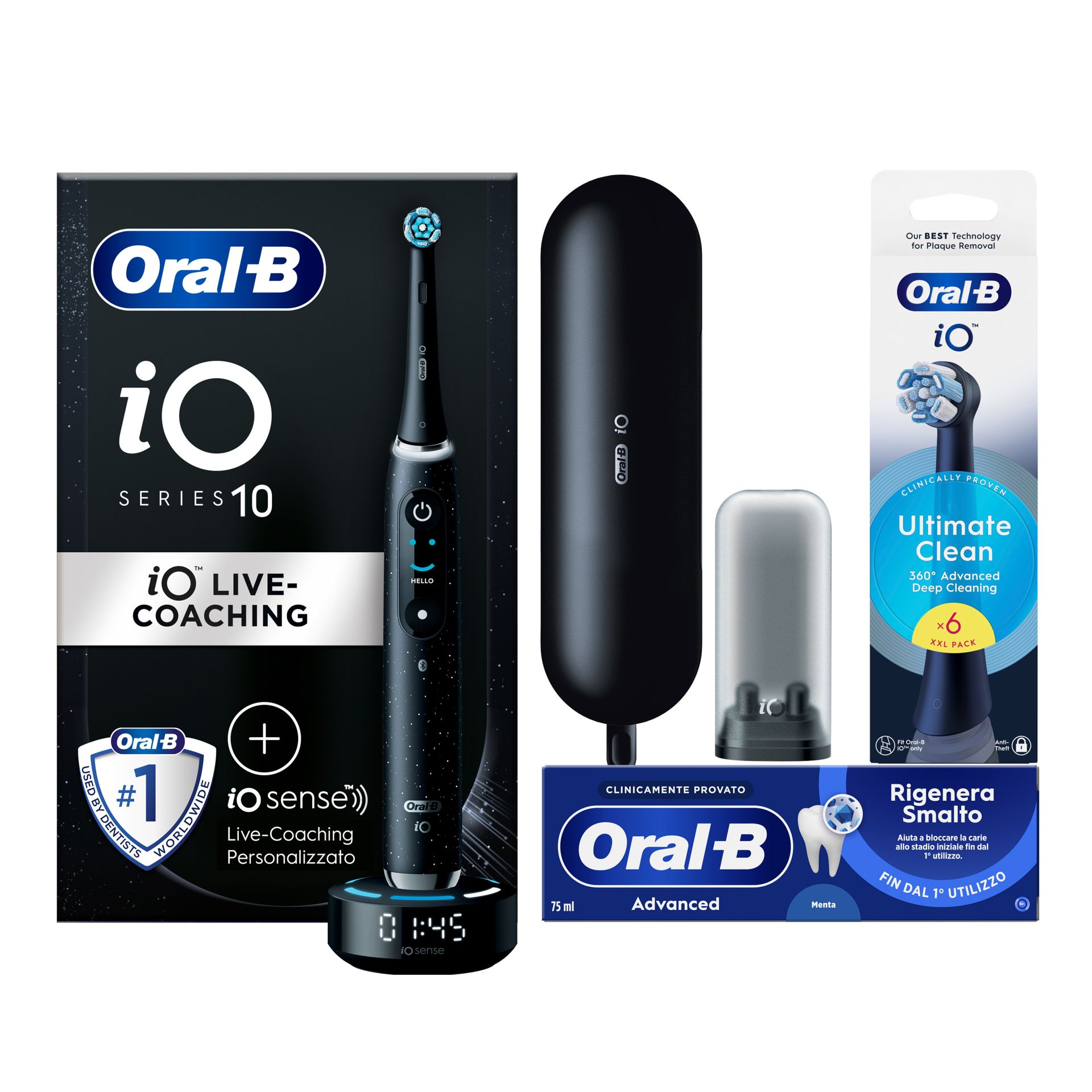 • RIVOLUZIONARIA TECNOLOGIA MAGNETICA iO per la migliore pulizia di Oral-B di sempre, per una sensazione di pulizia professionale e un incredibile spazzolamento personalizzato